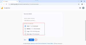 Step 6: Select your business industry from the dropdown menu and then choose your business size from the options